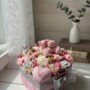 Uma caixa em formato de coração transbordante de flores artesanais e detalhes botânicos.